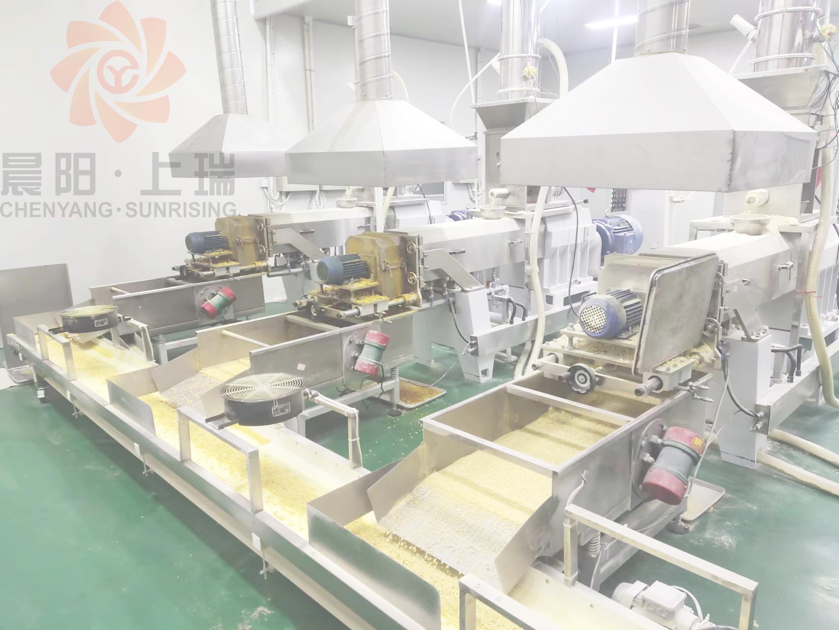 客戶(hù)因早餐營(yíng)養粉(沖調類(lèi)營(yíng)養粉)市場(chǎng)需求不斷增加,產(chǎn)能需求日益旺盛增加,與晨陽(yáng)分多次訂購營(yíng)養粉加工膨化設備,為保證產(chǎn)品的高質(zhì)量生產(chǎn),客戶(hù)生產(chǎn)車(chē)間使用無(wú)塵凈化車(chē)間。采用濟南晨陽(yáng)自主研發(fā)的新型62雙螺桿膨化機,本型號的機器單機產(chǎn)能300公斤每小時(shí),本機型運行穩定,產(chǎn)品質(zhì)量在同行業(yè)排在前端,客戶(hù)用該機型24小時(shí)不間斷連續運行,單機日產(chǎn)能7.2噸。該機型在客戶(hù)工廠(chǎng)經(jīng)住考驗,得到客戶(hù)的充分肯定。在日產(chǎn)7噸的產(chǎn)能下已經(jīng)復制6臺機器,擴產(chǎn)到日產(chǎn)能到45噸,產(chǎn)能和質(zhì)量的穩定在同行業(yè)已經(jīng)達到頂端??蛻?hù)根據市場(chǎng)需求,已經(jīng)在研產(chǎn)新的生產(chǎn)線(xiàn),規劃未來(lái),未雨綢繆!感謝客戶(hù)的信任,我們將一如既往的用熱情的服務(wù)和更高的質(zhì)量回饋客戶(hù)嗎,合作共贏(yíng),同謀發(fā)展!