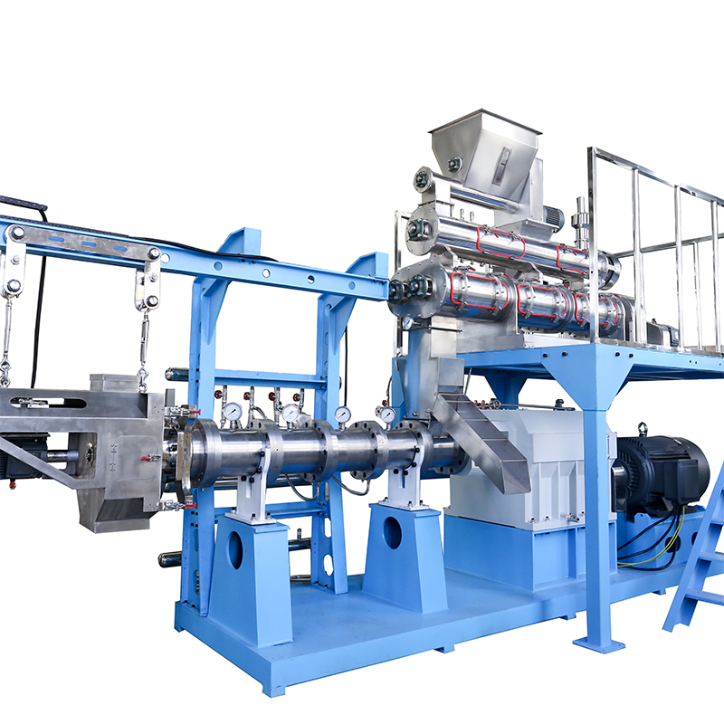雙螺桿擠壓膨化機(jī)具有適應(yīng)性強(qiáng)、滑移輸送及自潔等優(yōu)點(diǎn),但其結(jié)構(gòu)復(fù)雜,投資成本高,相應(yīng)的維修和操作成本也較高。因而,雙螺桿擠壓膨化機(jī)一般用于那些具有高附加值的水產(chǎn)和寵物飼料生產(chǎn)中,如鰻魚、甲魚及幼魚飼料的生產(chǎn),因?yàn)檫@些產(chǎn)品在市場上銷售的價格足以回報(bào)雙螺桿技術(shù)的制造產(chǎn)品所需的費(fèi)用;另外一些特種水產(chǎn)飼料如微粒水產(chǎn)飼料(直徑為0.8~1.5mm)、高脂肪水產(chǎn)料及生產(chǎn)量小但配方常變的飼料也需采用雙螺桿擠壓膨化機(jī)進(jìn)行生產(chǎn)。