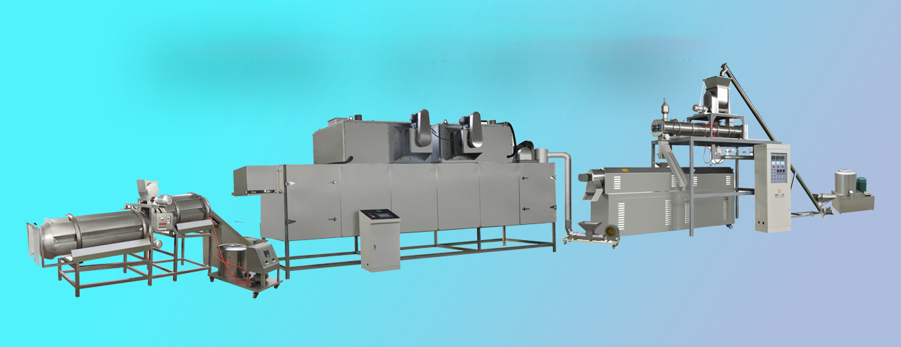 本生產(chǎn)線(xiàn)改變生產(chǎn)工藝流程可以生產(chǎn)寵物食品狗糧、貓糧、魚(yú)飼料等產(chǎn)品。鮮肉添加比例可以達到30%,滿(mǎn)足動(dòng)物對蛋白的營(yíng)養需求。膨化機可以選用干法膨化和濕法膨化;烘干機可以根據電、燃氣、蒸汽能源使用合理設計;調味設備有單滾筒,雙滾筒連續調味機,單頭自動(dòng)稱(chēng)重八角調味機、雙頭八角自動(dòng)調味機、滾筒式批次稱(chēng)重調味機等。