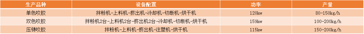 直接擠出型咬膠主要加工條狀、棒狀雙色咬膠,其形狀通過(guò)磨具擠壓后直接定型,通過(guò)切斷機切斷后達到要求的理想尺寸。其形狀根據產(chǎn)品要求開(kāi)模,五角星、五棱、六棱、十字、狗骨頭,、雙色熊掌、五花肉等形狀等。