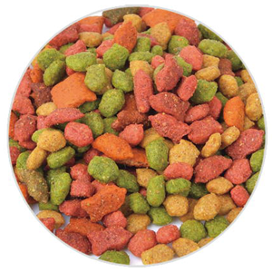 工藝方面寵物食品生產(chǎn)技術(shù)可將客戶(hù)的配方的體現在產(chǎn)品的形狀、大小、適口性、膨化度以及水分含量等,并可按照客戶(hù)要求著(zhù)色、噴油、噴漿、噴粉以及成品自動(dòng)混色(料)。