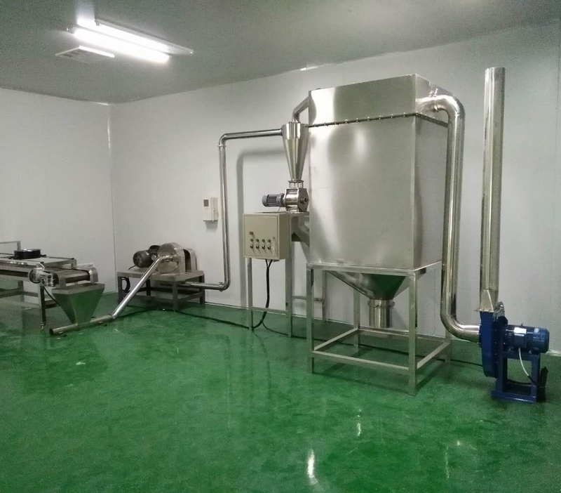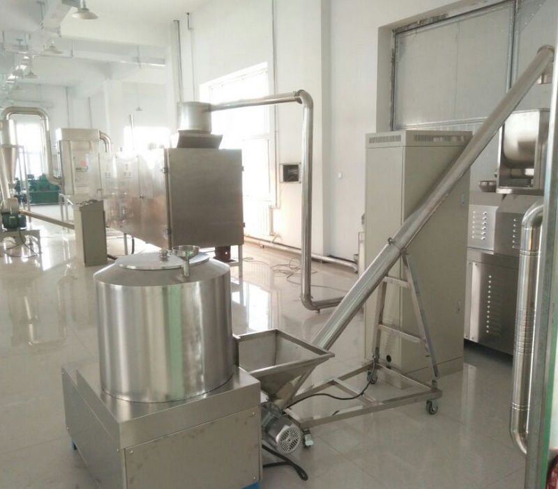 生產(chǎn)線(xiàn)構成:拌粉機→螺旋提料機→膨化主機→冷卻輸送機→除塵粉碎機