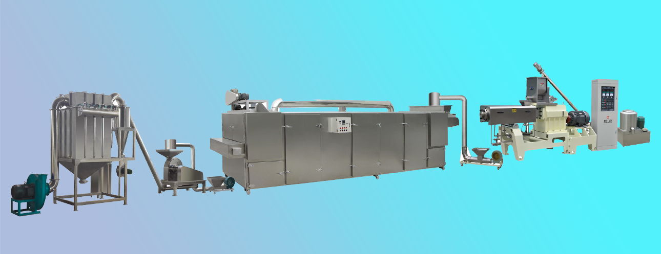 原料混合-擠壓膨化-烘干-粉碎-混合--包裝