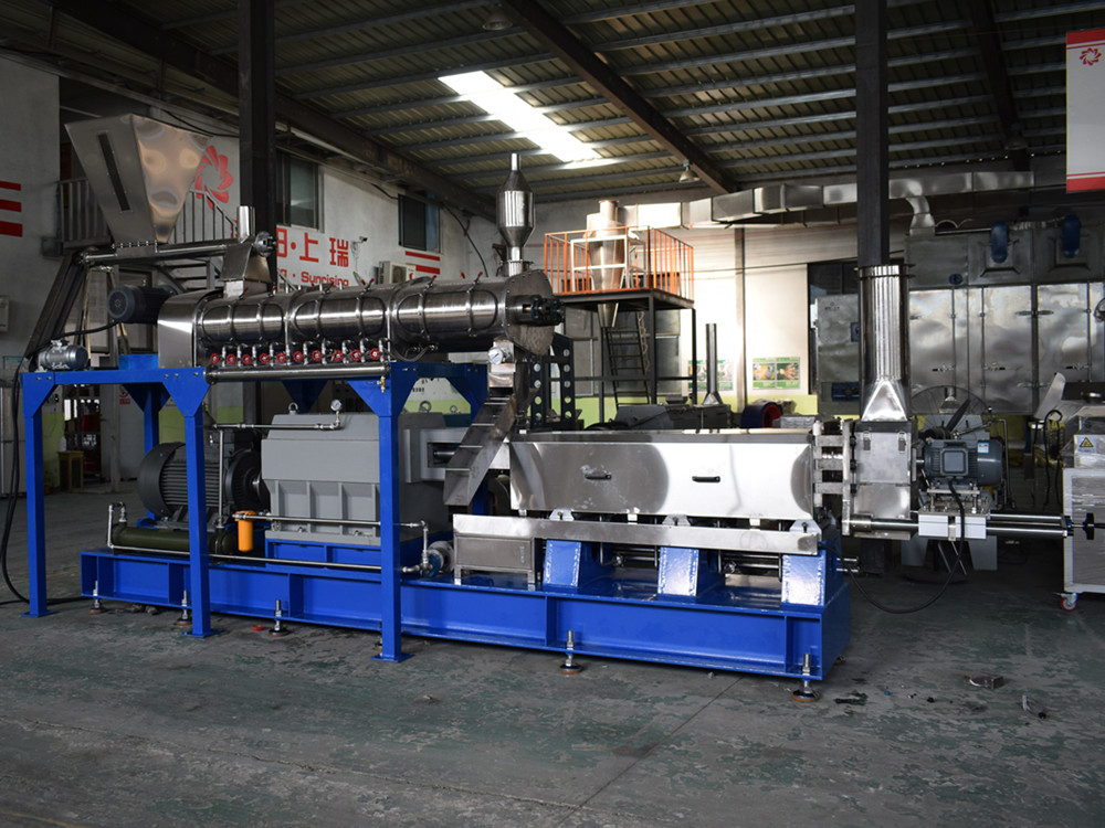 雙螺桿膨化機由供料系統、擠壓系統、旋切系統、加熱系統、冷卻系統、傳動(dòng)系統、控制系統組成。該機適用原料廣泛、生產(chǎn)產(chǎn)品多樣,變頻調速、自動(dòng)化程度高、運行平穩、使用壽命長(cháng)。