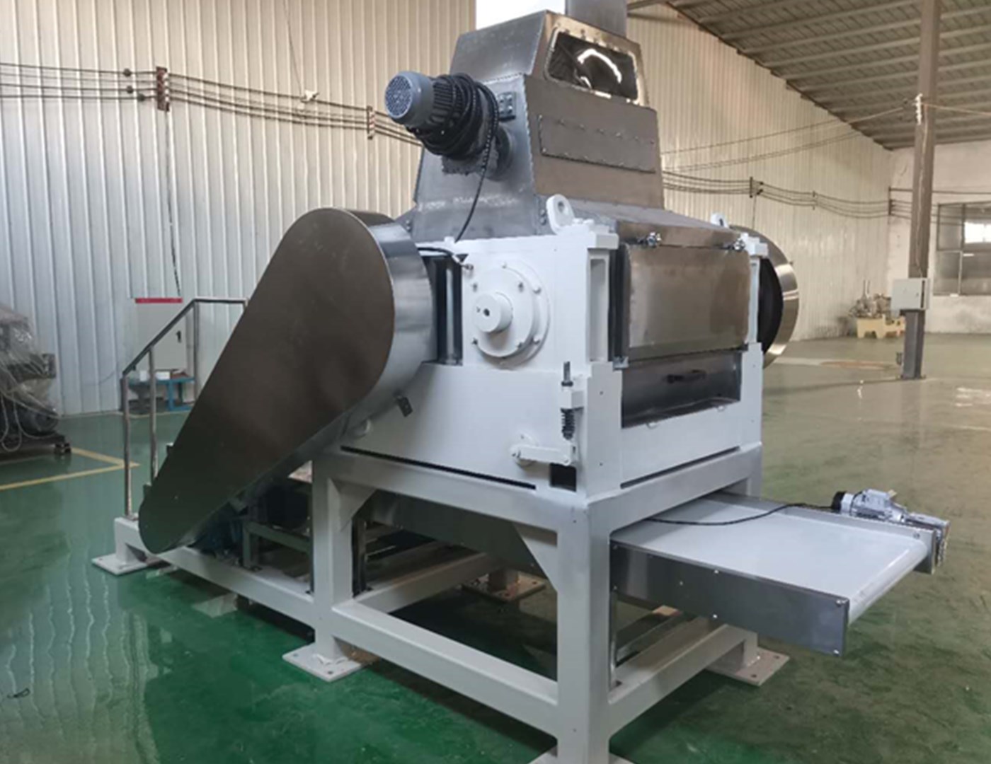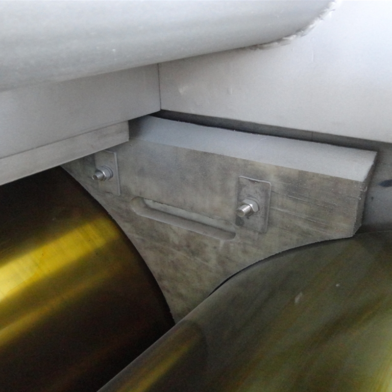 出料口:pvc輸送帶把壓好的片輸送到機器外側,可有效避免風(fēng)送機送料堵料的情況。