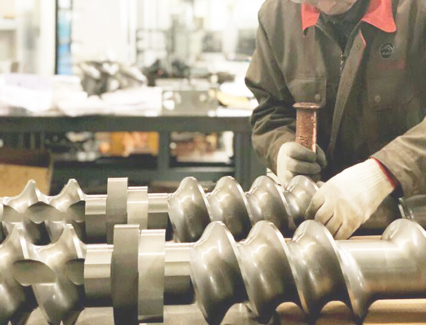 螺桿:螺桿為合金鋼材質(zhì),積木組合式螺桿,螺桿直徑:57mm,長(cháng)徑比為:1:25.5,螺桿螺紋有效長(cháng)度:1453.5mm