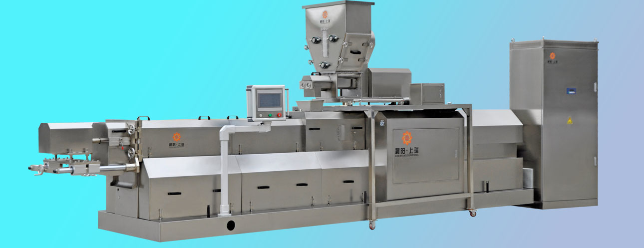 雙螺桿膨化機應用領(lǐng)域涵蓋農產(chǎn)品深加工早餐方便粥、營(yíng)養米、方便米飯、早餐谷物食品、休閑膨化食品、拉絲蛋白、變性淀粉、寵物食品、水產(chǎn)飼料等加工領(lǐng)域。